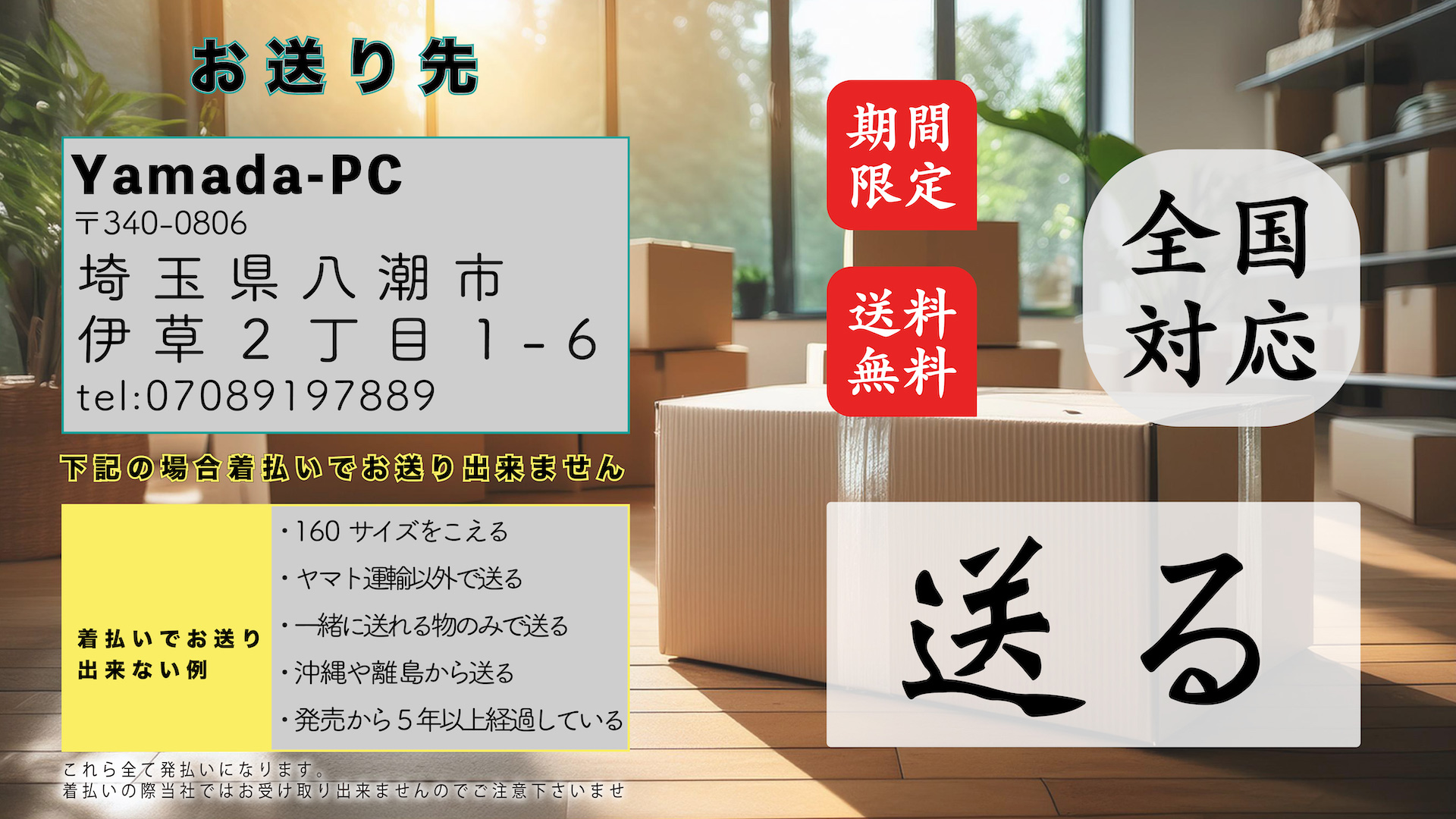 利用可能な地域:日本全国 から送れます (離島含む)